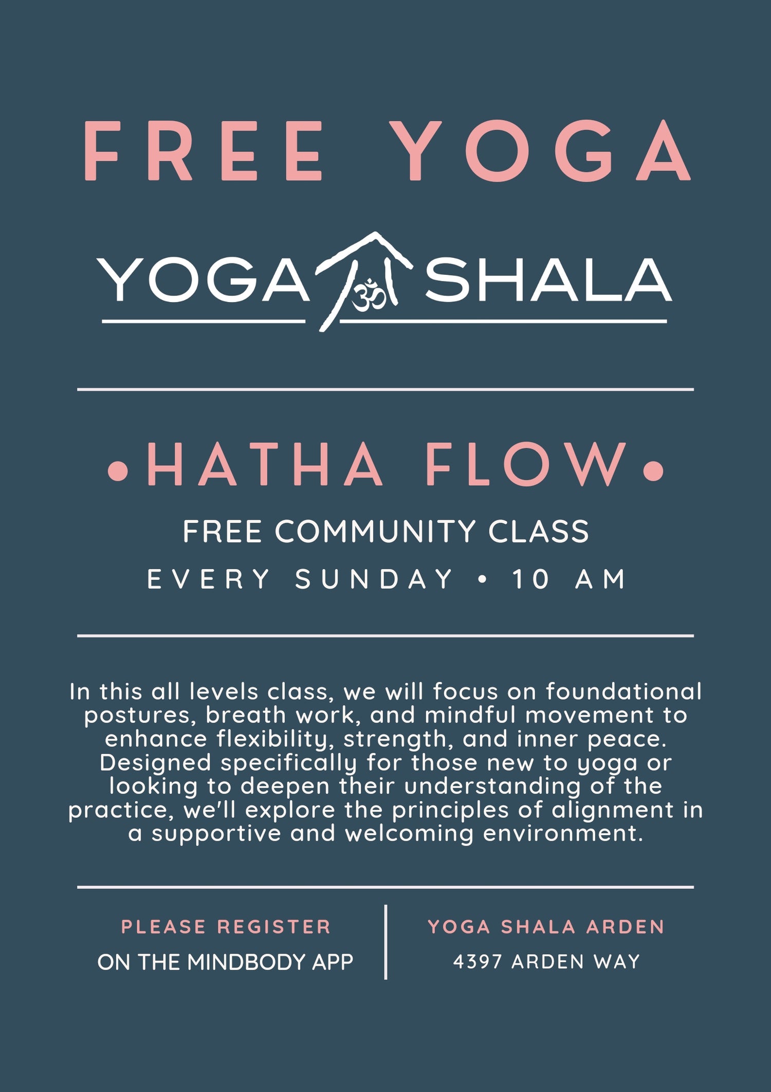 Our FREE community class at Yoga Shala Arden!! 60 min classes, please bring a mat and water. You can register at the link below, it will take you through the MindBody site where you will need to create an account and sign the liability waiver. See you on your mat!